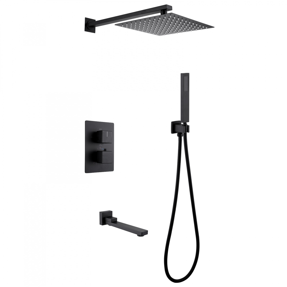 Душевая система для ванны с термостатом Abber Daheim AF8250B, черный матовый