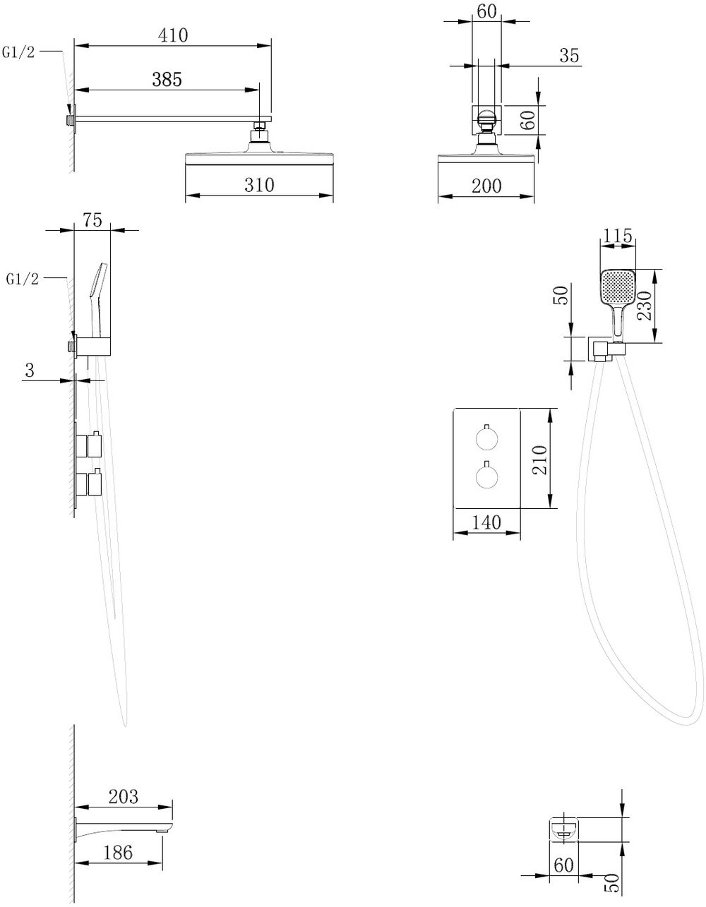 Душевая система для ванны с термостатом Abber Weiss Insel AF8050W, белый