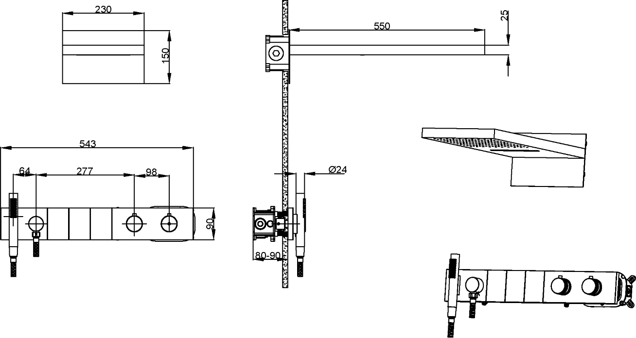 Душевая система для ванны с термостатом Boheme Zodiac 133-2-SGM, shine gun metal
