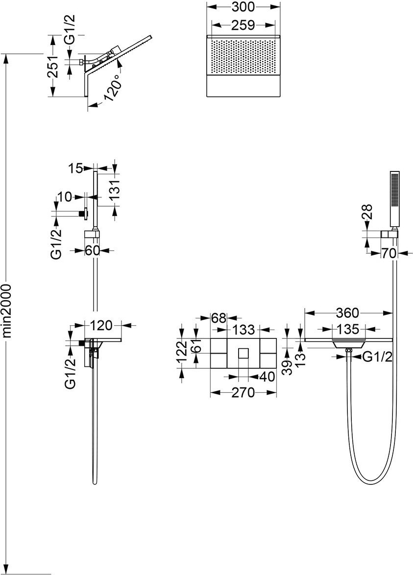 Душевая система для ванны с термостатом Vincea Futura VSFW-2F11TMB, черный