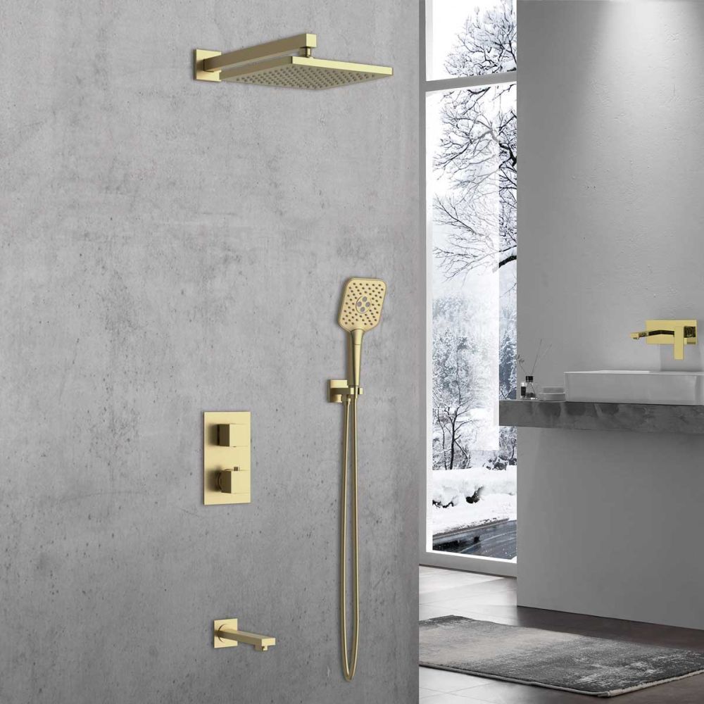 Душевая система для ванны с термостатом Vincea Next VSFW-1N3TBG, брашированное золото