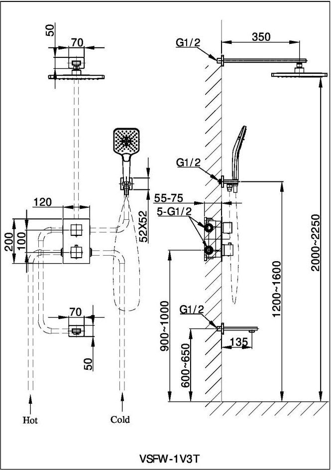 Описание душевая система с изливом Vincea VSFW-1N3TGM