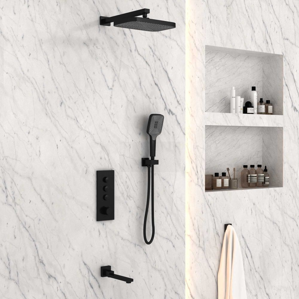 Душевая система для ванны с термостатом Vincea VSFW-433T1MB, черный