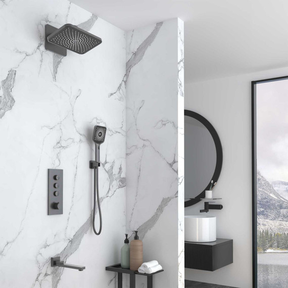 Душевая система для ванны с термостатом Vincea VSFW-433TI4GM, вороненая сталь