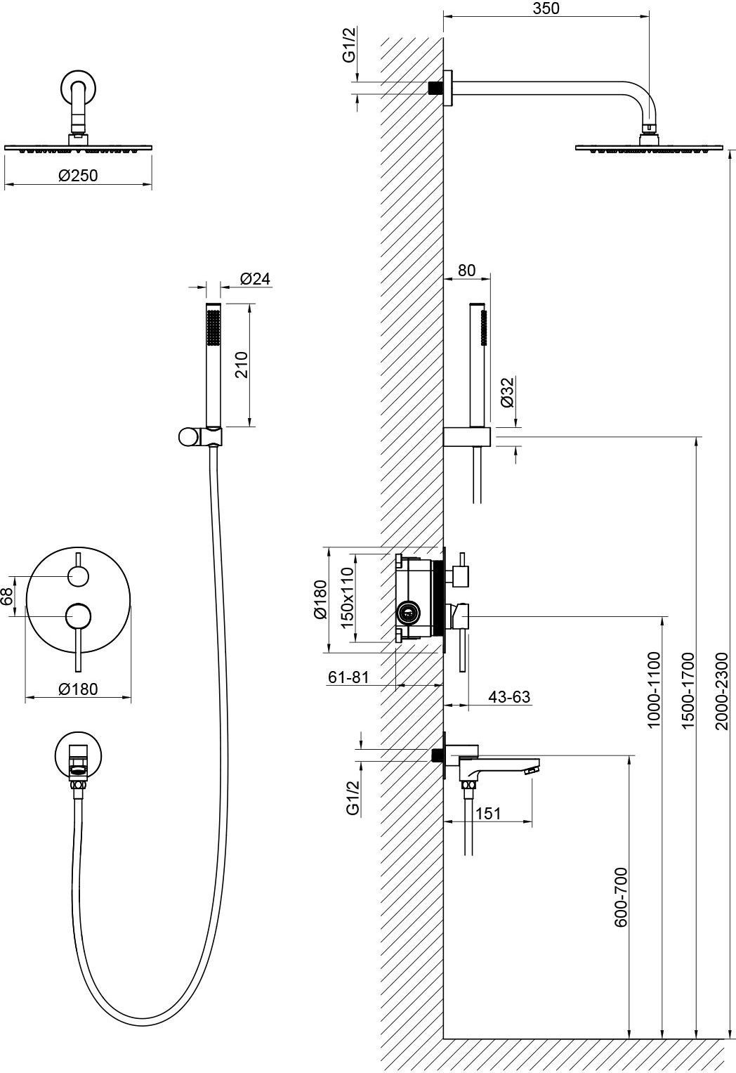 - Душевая система сделана из латуни класса А