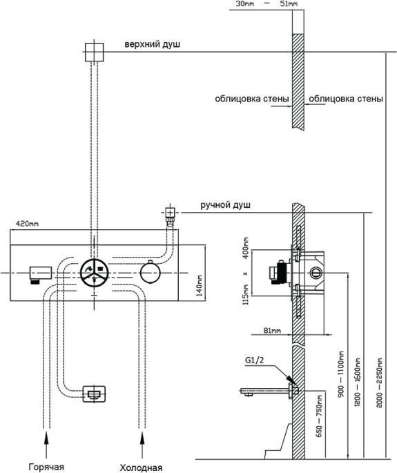- верхний душ ,