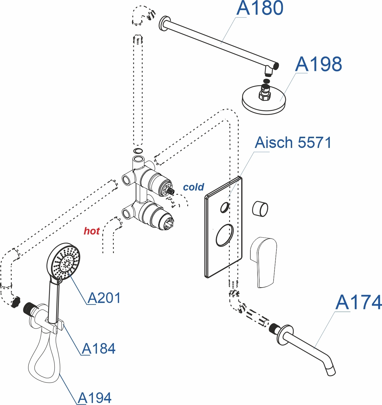 Характеристики душевая система с изливом WasserKraft (A175571)