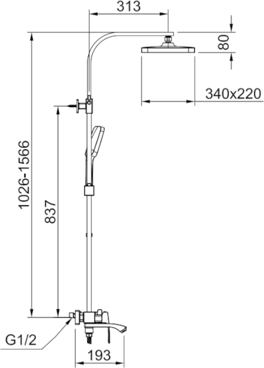 Характеристики душевая система с изливом Raglo (R01.24.06)