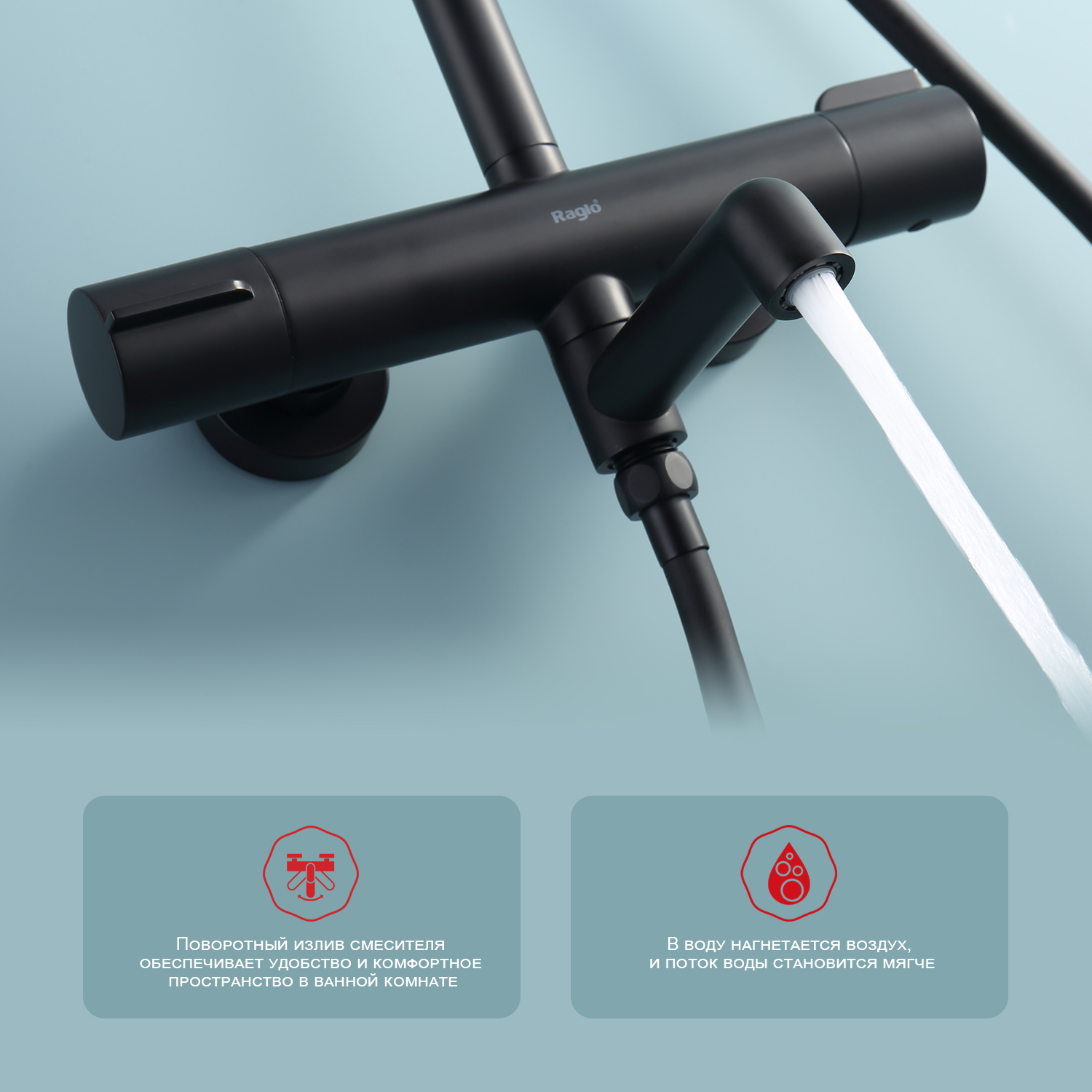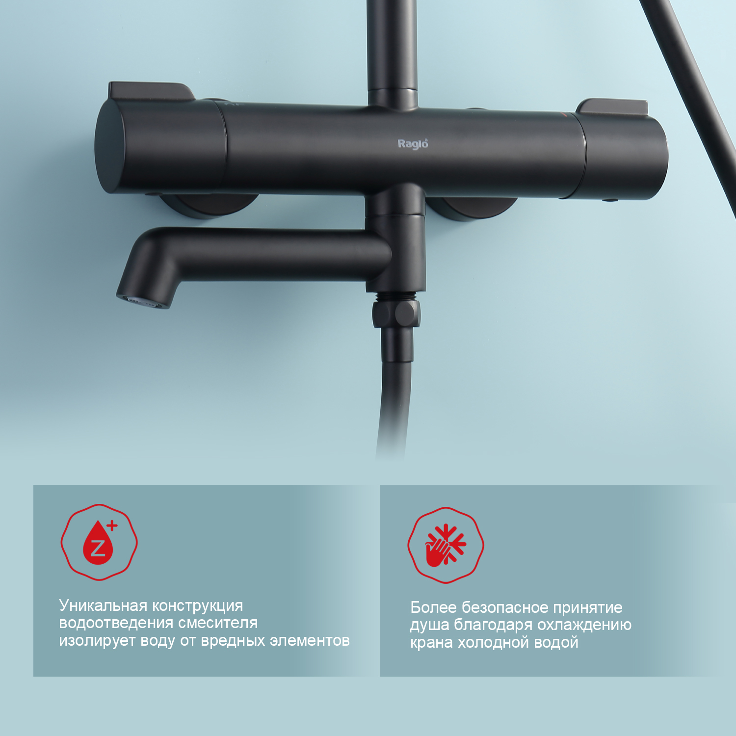 Душевая система с термостатом Raglo R20.26.06, чёрный