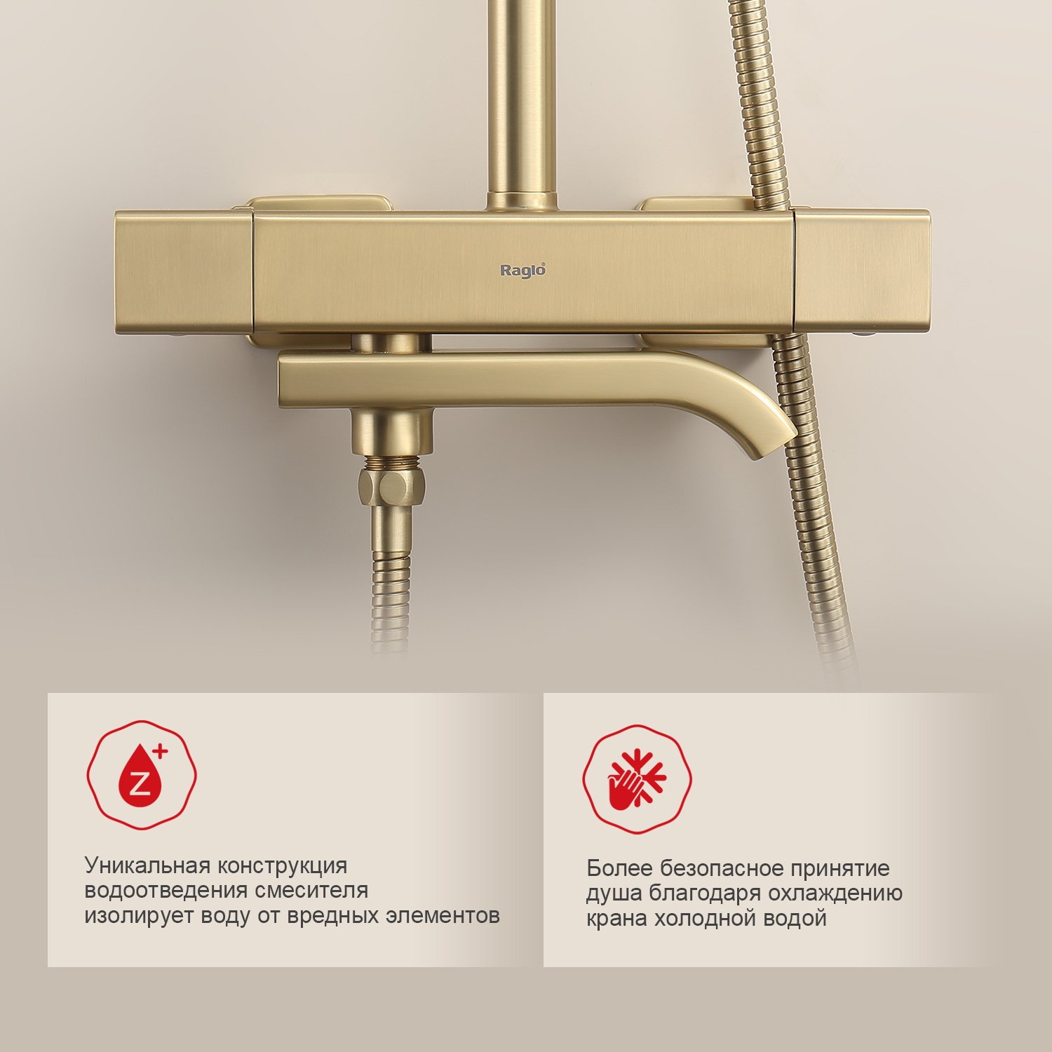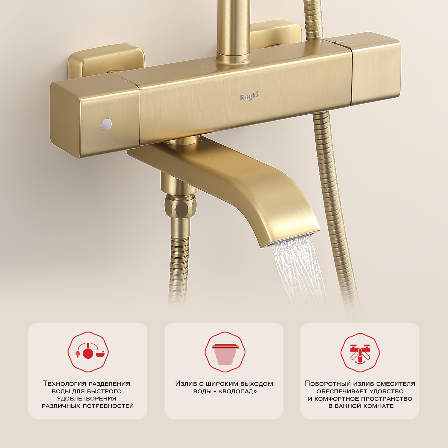 Душевая система с термостатом Raglo R22.26.03, сатин золотой