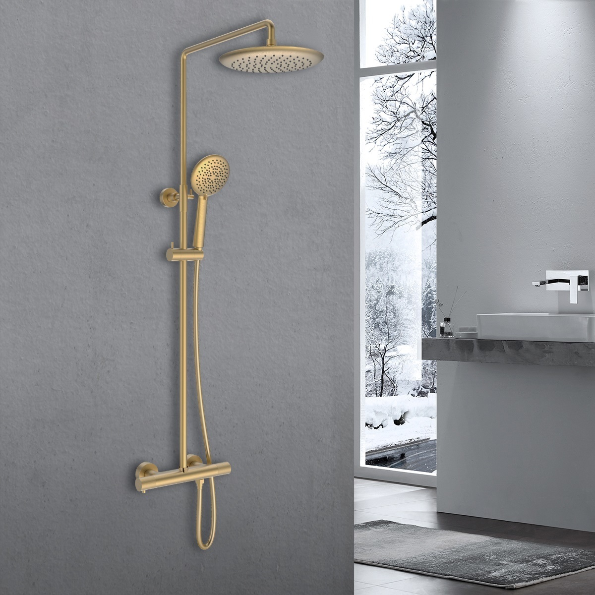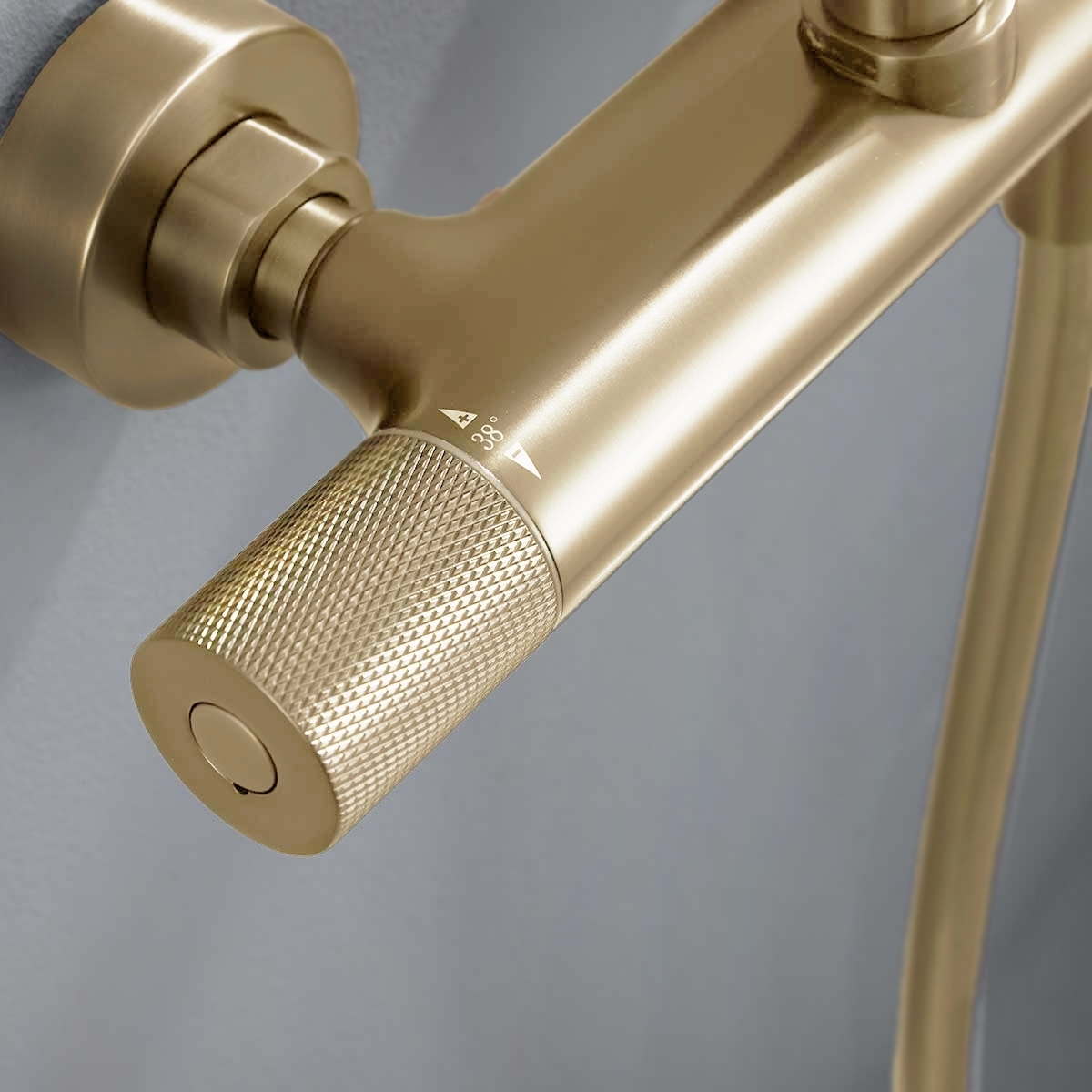 Душевая система с термостатом Vincea Desire VSFS-1D0TBG, материал латунь, цвет брашированное золото.
