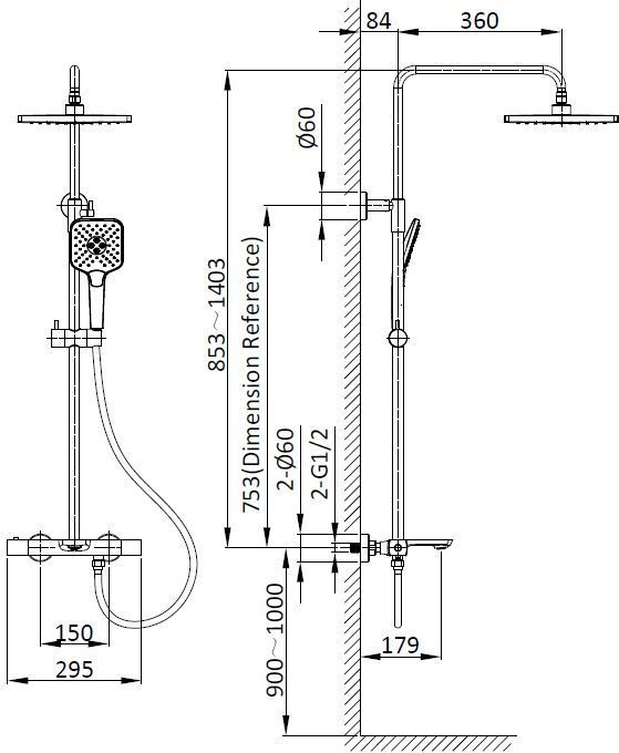 Характеристики душевая система с изливом Vincea (VSFS-1N1TBG)