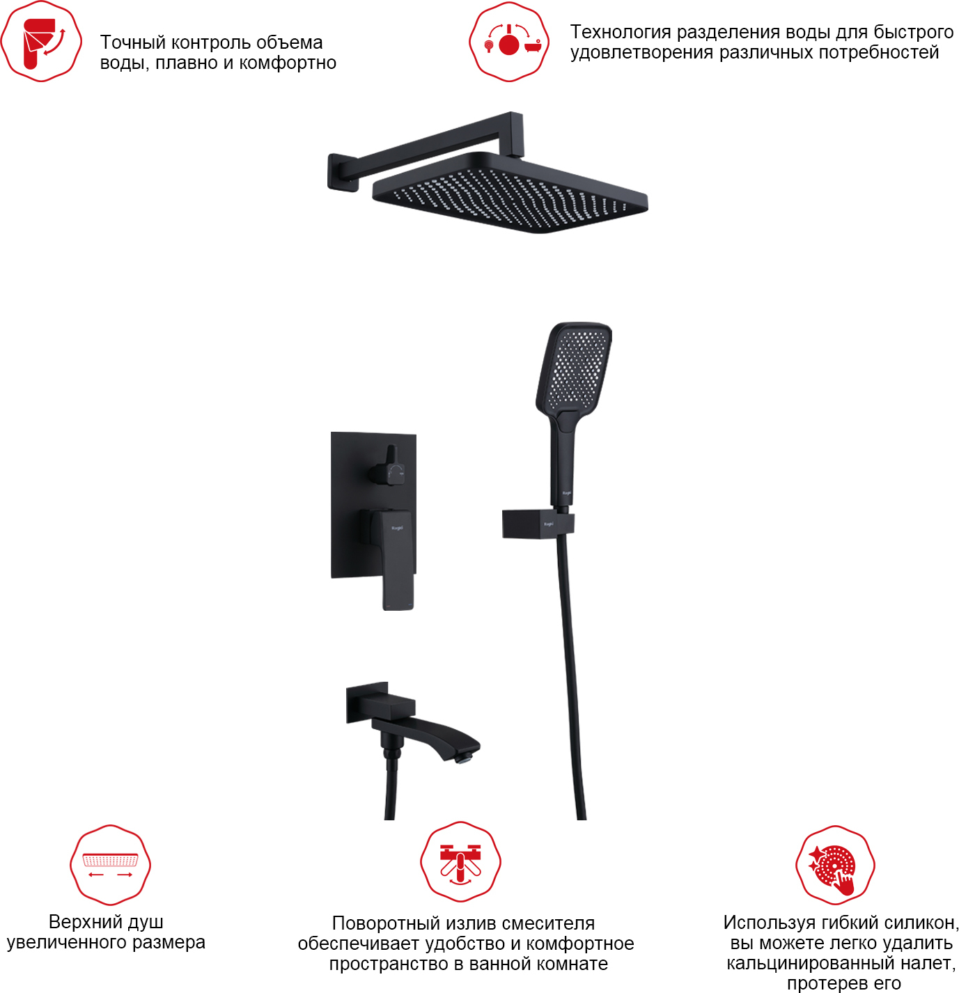 Душевая система встраиваемая Raglo R01.27.06 (со скрытой частью) чёрный