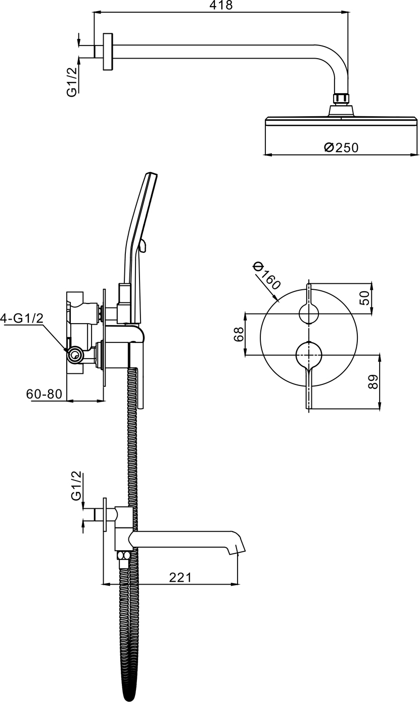 Душевая система встраиваемая Raglo R20.27 (со скрытой частью) хром