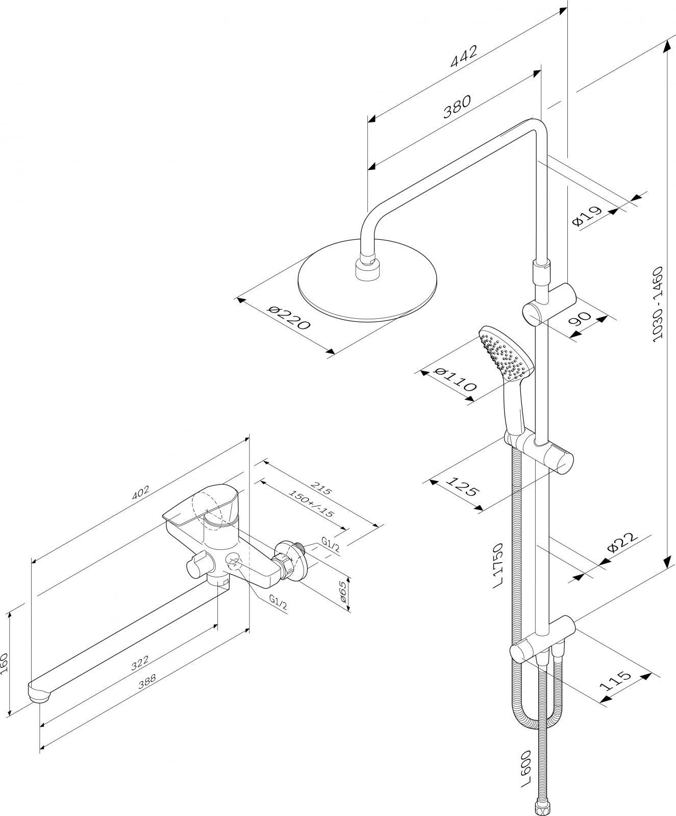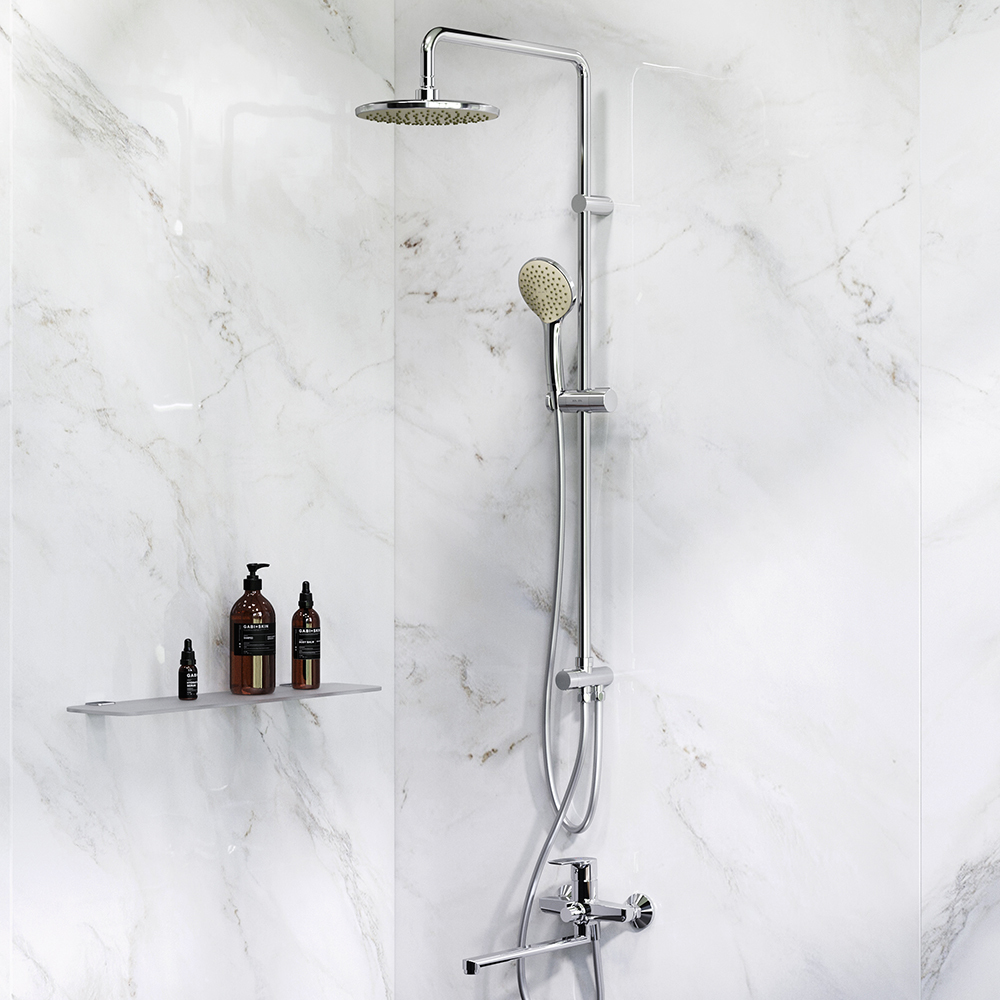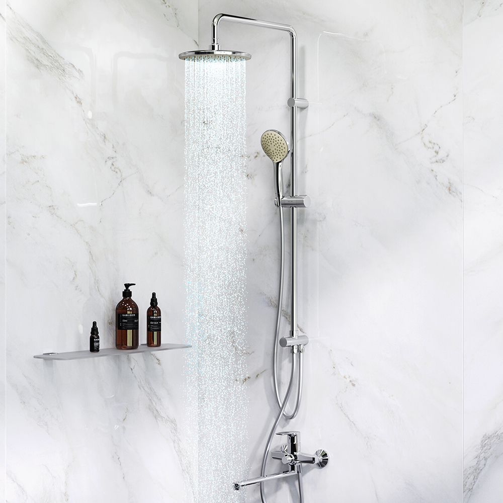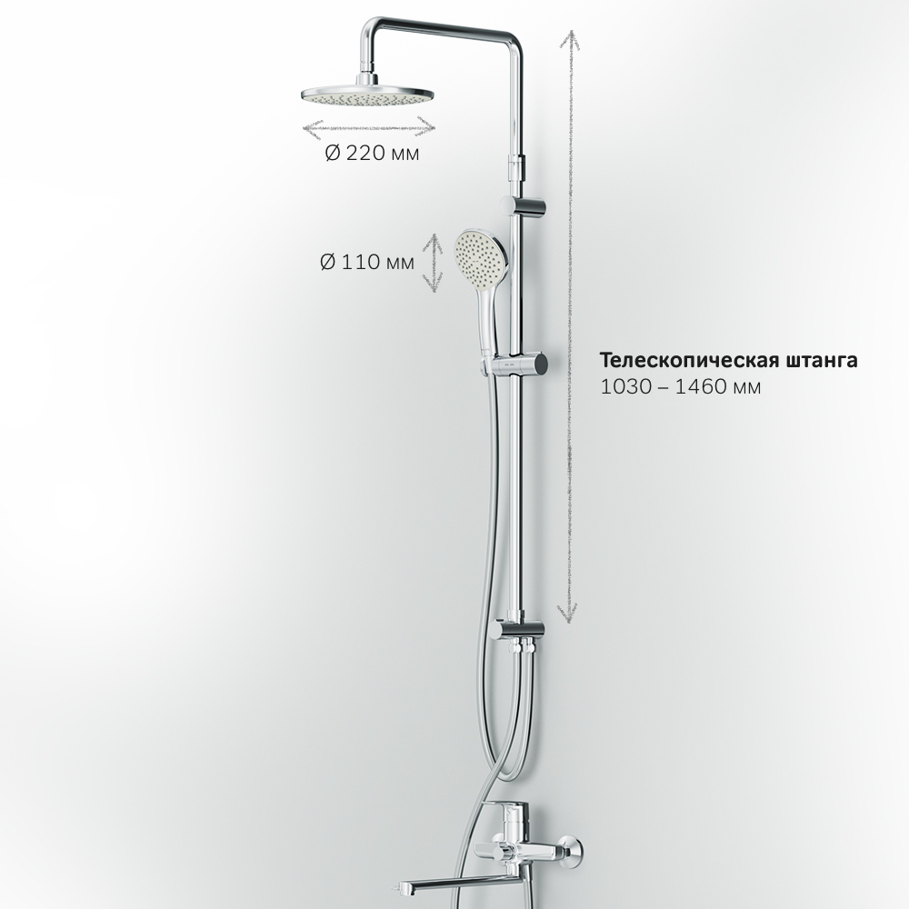 Готовое решение для ванной комнаты. Брутальный и трендовый дизайн смесителя Gem: уникальная шестигранная форма выделяется среди однообразных стандартных смесителей в доступном ценовом сегменте. Поворотный излив 322 мм позволит с легкостью наполнять емкости. Функциональная душевая система. Поворотная и телескопическая душевая штанга позволит индивидуально настроить расположение верхнего душа в диапазоне от 1 030 мм до 1 460 мм. Широкий верхний душ 220 мм ручной душ 110 мм душевой шланг с защитой от скручивания.