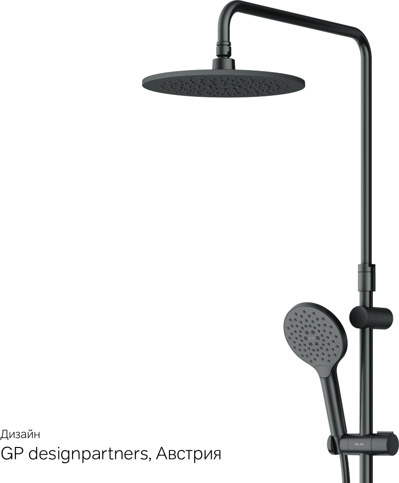 Тотальный дизайн в действии: все детали душевой системы – от пропорций ручного и верхнего душей до рисунка расположения форсунок на лейках. Премиальные размеры и продуманные детали: увеличенный диаметр душевых леек (верхний душ 220 мм и ручной душ 120 мм) позволит ощутить преимущества тропического душа тогда как увеличенная длина шланга 1750 мм обеспечит свободу движений во время принятия душа. Телескопическая поворотная штанга регулируется по высоте в диапазоне от 1030 до 1460 мм обеспечивая комфорт для людей любого роста а шаровой шарнир в держателе верхнего душа позволяет регулировать угол его наклона. Нижнее крепление штанги выполнено в виде полочки а переключатель верхний-ручной душ является ее продолжением. Нажав на него вы можете менять источник потока воды от ручной лейки к верхнему душу.