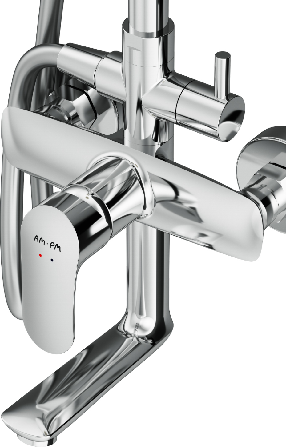Тотальный дизайн в действии: все детали душевой системы – от пропорций ручного и верхнего душей до рисунка расположения форсунок на лейках – подчинены единой дизайн-концепции в ультрамодном стиле Dynamic Organic. Интенсивный напор даже при низком давлении в системе: инновационная функция Air In увеличивает напор вдвое при этом сокращая расход воды на 30%. Результат – экономия средств забота об экологии а главное – непередаваемое удовольствие от принятия душа. Премиальные размеры и продуманные детали: увеличенный диаметр душевых леек (верхний душ 254 мм и ручной душ 120 мм) позволит ощутить преимущества тропического душа тогда как увеличенная длина шланга 1750 мм обеспечит свободу движений во время принятия душа. Телескопическая поворотная штанга регулируется по высоте в диапазоне от 1030 до 1460 мм обеспечивая комфорт для людей любого роста а шаровый шарнир в держателе верхнего душа позволяет регулировать угол его наклона. Эксклюзивная разработка: специально спроектированный для АМ.РМ керамический картридж SoftMotion 35 мм обеспечивает оптимальную регулировку температуры а также позволяет выдерживать любые перепады давления.