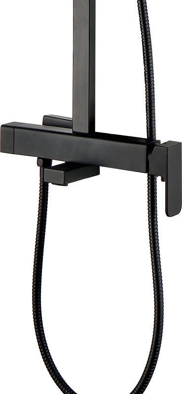 Душевая стойка с выдвижным изливом Aquanet Gotic, материал латунь, цвет чёрный матовый.