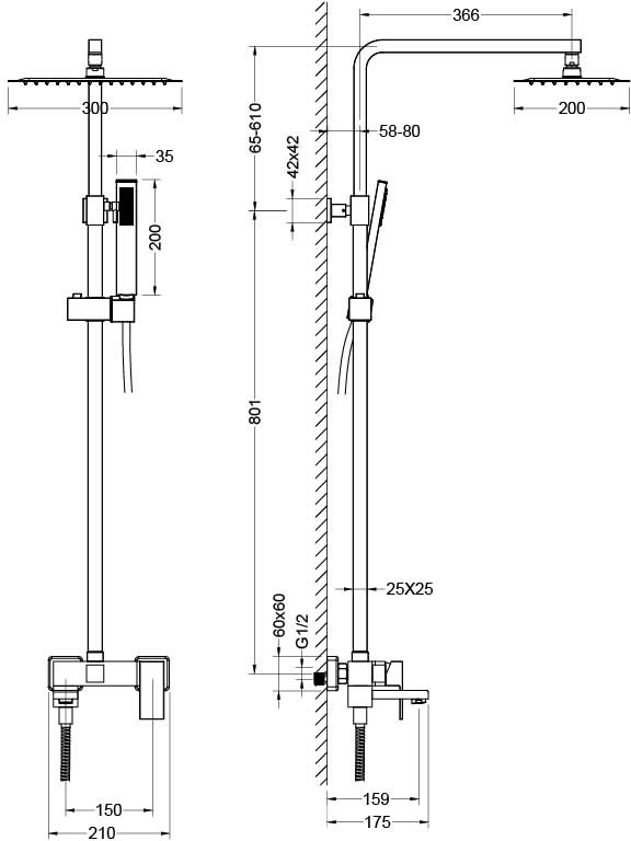Характеристики душевая система с изливом Aquatek (AQ2640MB)