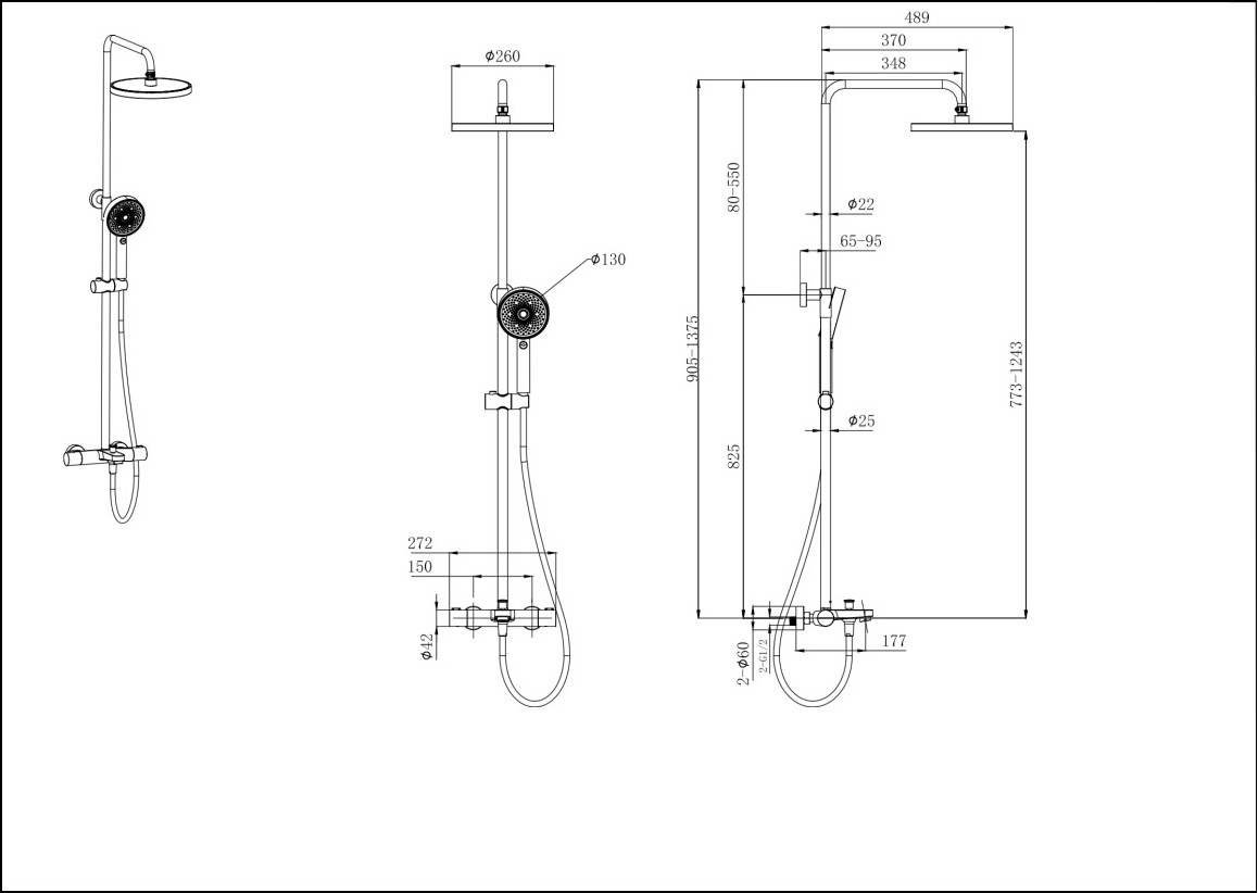 - регулируемая душевая штанга из нержавеющей стали, выдвигающаяся до 1375 мм в высоту