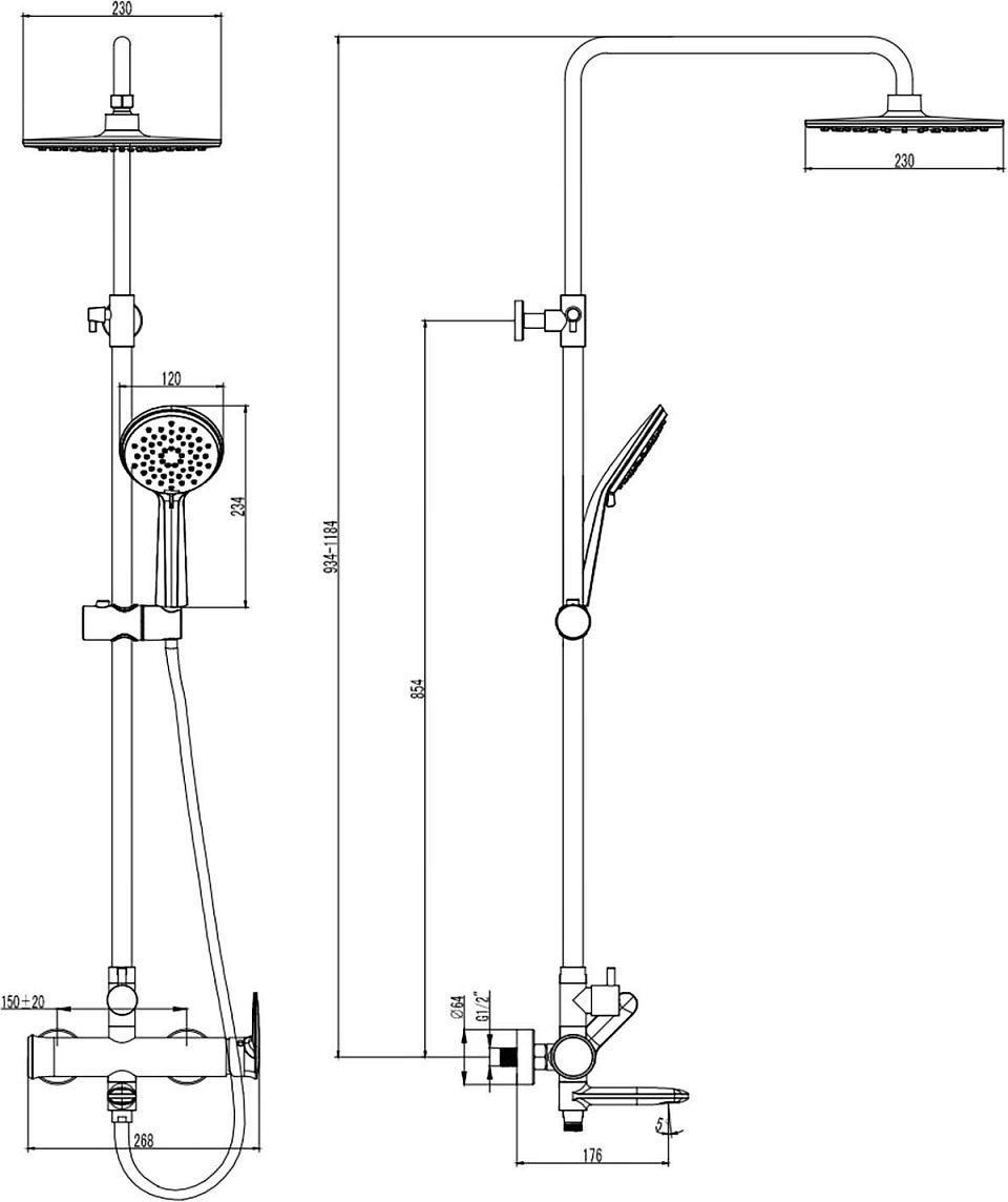 Характеристики душевая система с изливом Azario (AZ-HV23U94C-1CK1J19A-ZH3394A-HB1153)