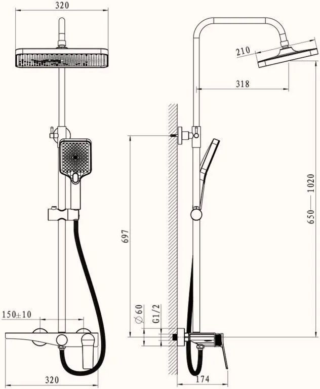 Душевая стойка Belz B24572-3, материал латунь, цвет графитовый.