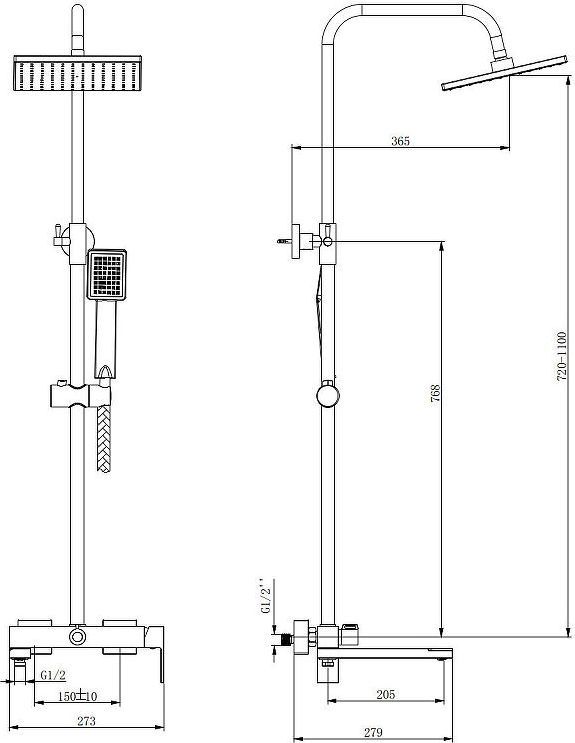 Душевая стойка с выдвижным изливом Belz B24613-3, материал латунь, цвет графит.