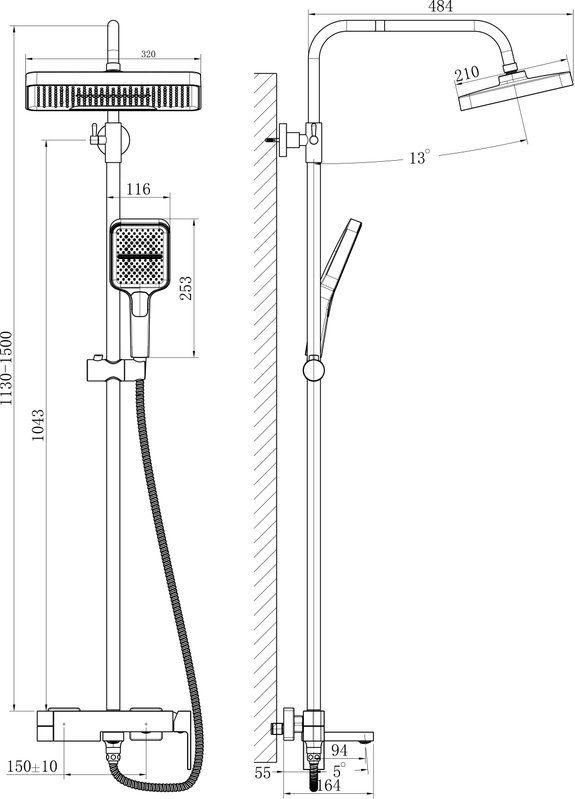 Душевая стойка Belz B24658-3, оружейная сталь
