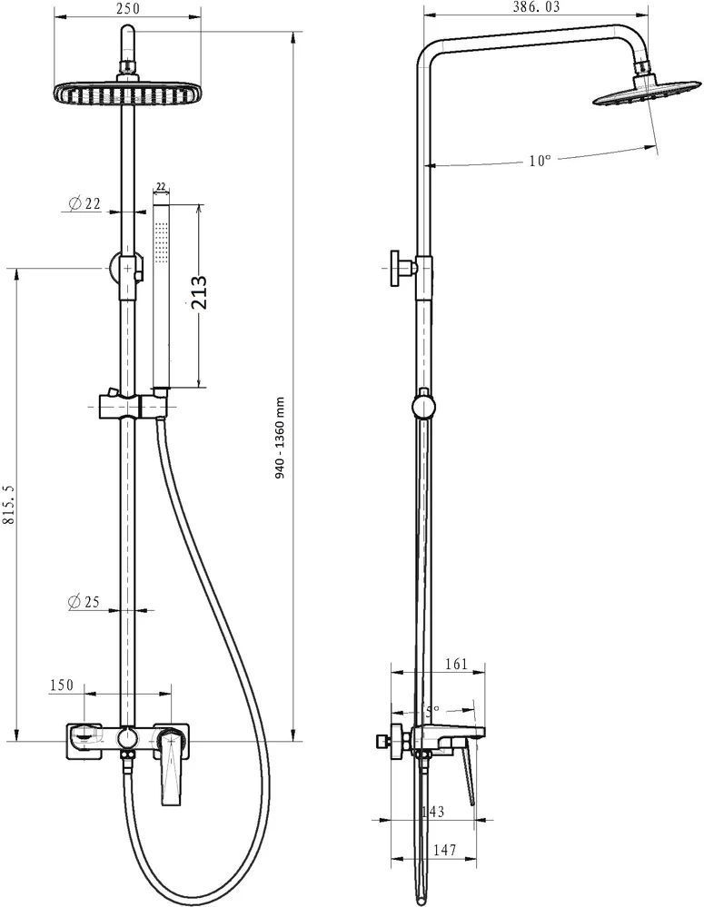 - верхний душ ,