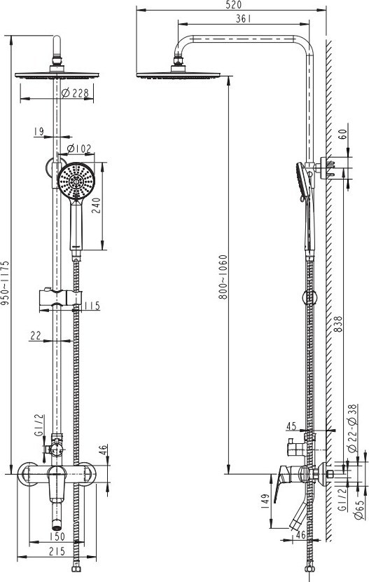 - верхний душ ,