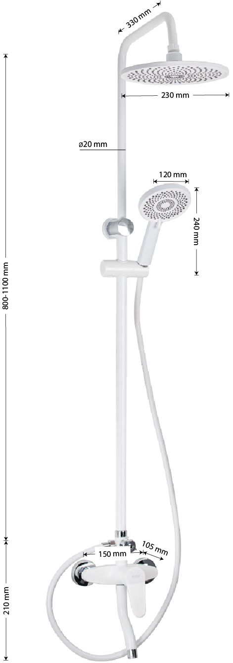 Душевая стойка Brimix 3054, материал абс пластик, цвет белый.