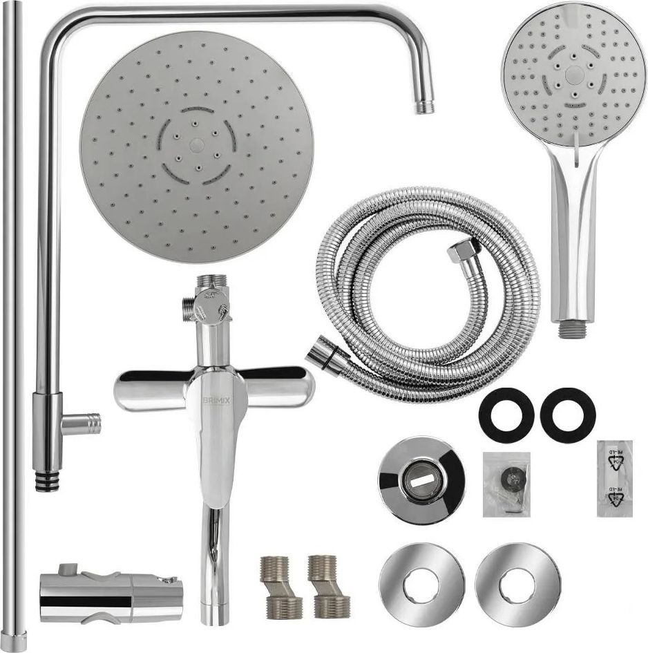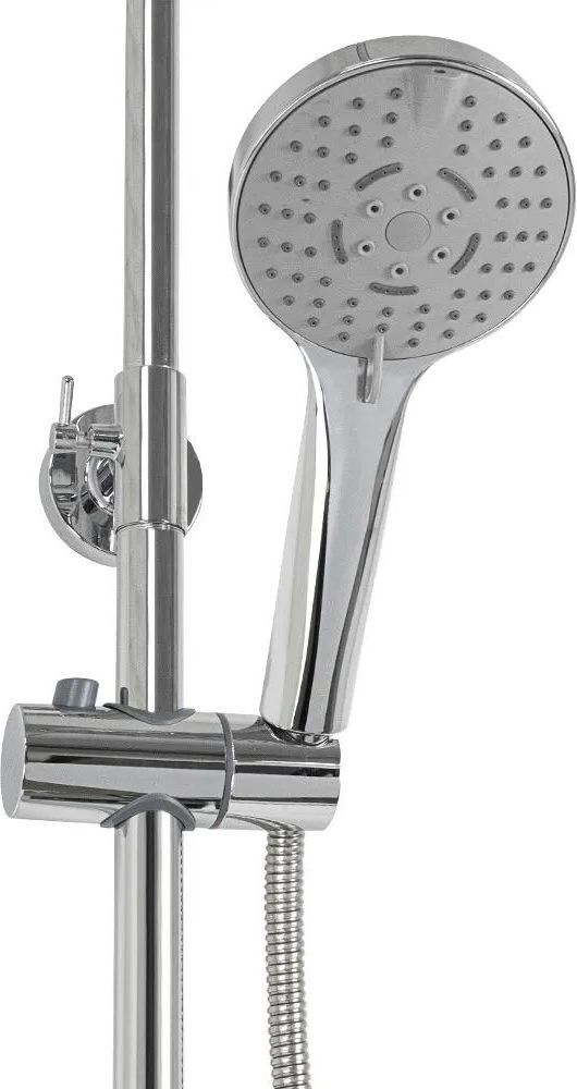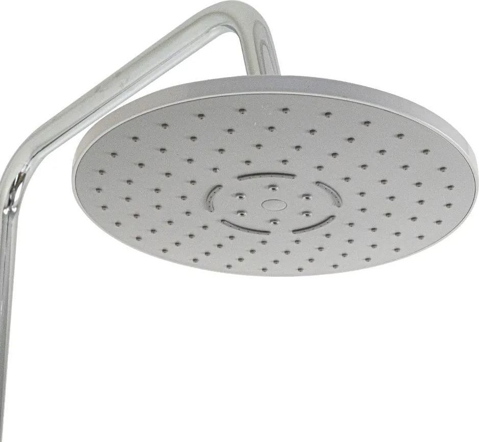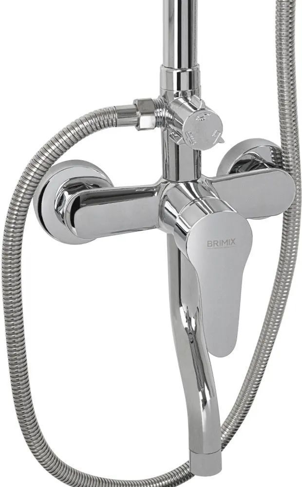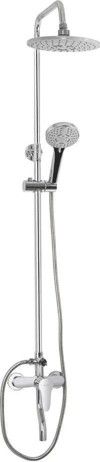Смеситель + стойка душевая телескопическая "тропический душ" с двумя лейками в ванную / душевую комнату, хромированные. Смеситель шаровый, пластик АБС с коротким поворотным изливом, душевым шлангом и лейкой и дивертор переключения в трёх положениях. Картридж d = 35 мм, ручка литая, аэратор для экономии воды, чашки и эксцентрики. Душевая, регулируемая по высоте стойка с присоединением к корпусу смесителя и дополнительным креплением к стене и крючками для принадлежностей и большой круглой лейкой с эффектом тропического душа. Габаритные размеры: ширина смесителя 150 мм, высота 280 мм, длина излива корпуса 100 мм, высота телескопической стойки 820 - 1120 мм, длина излива стойки 330 мм, круглая двухрежимная душевая лейка d = 220 мм, круглая лейка тропический душ d = 110 мм, шланг 150 см. Вес - 3,100 кг, объём - 0,02900 м3. В комплекте корпус с изливом, чашки, эксцентрики, прокладки, стойка, дивертор, шланг, две лейки, крепления