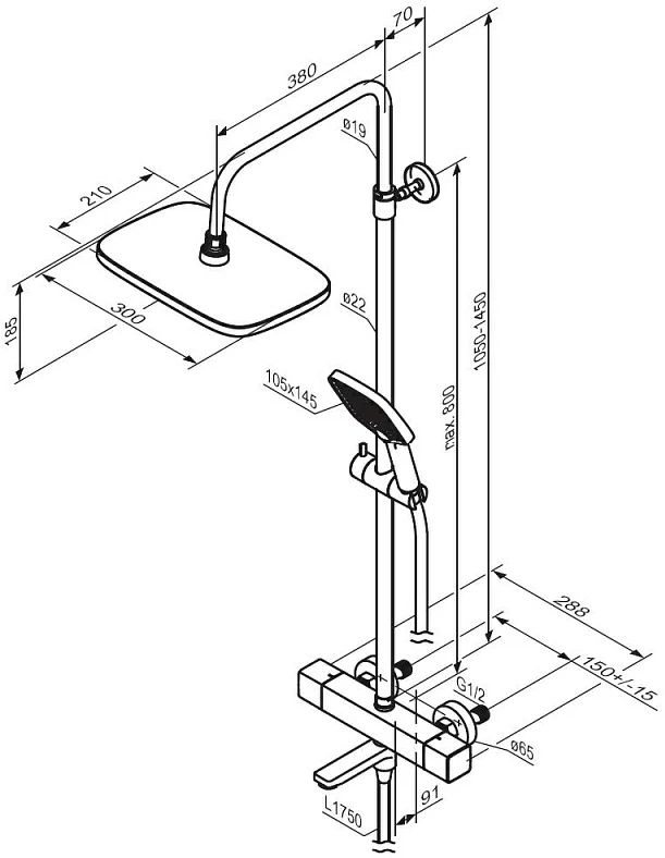 - В комплектацию душевой системы входят: тропический душ, ручной душ, термостатический смеситель.