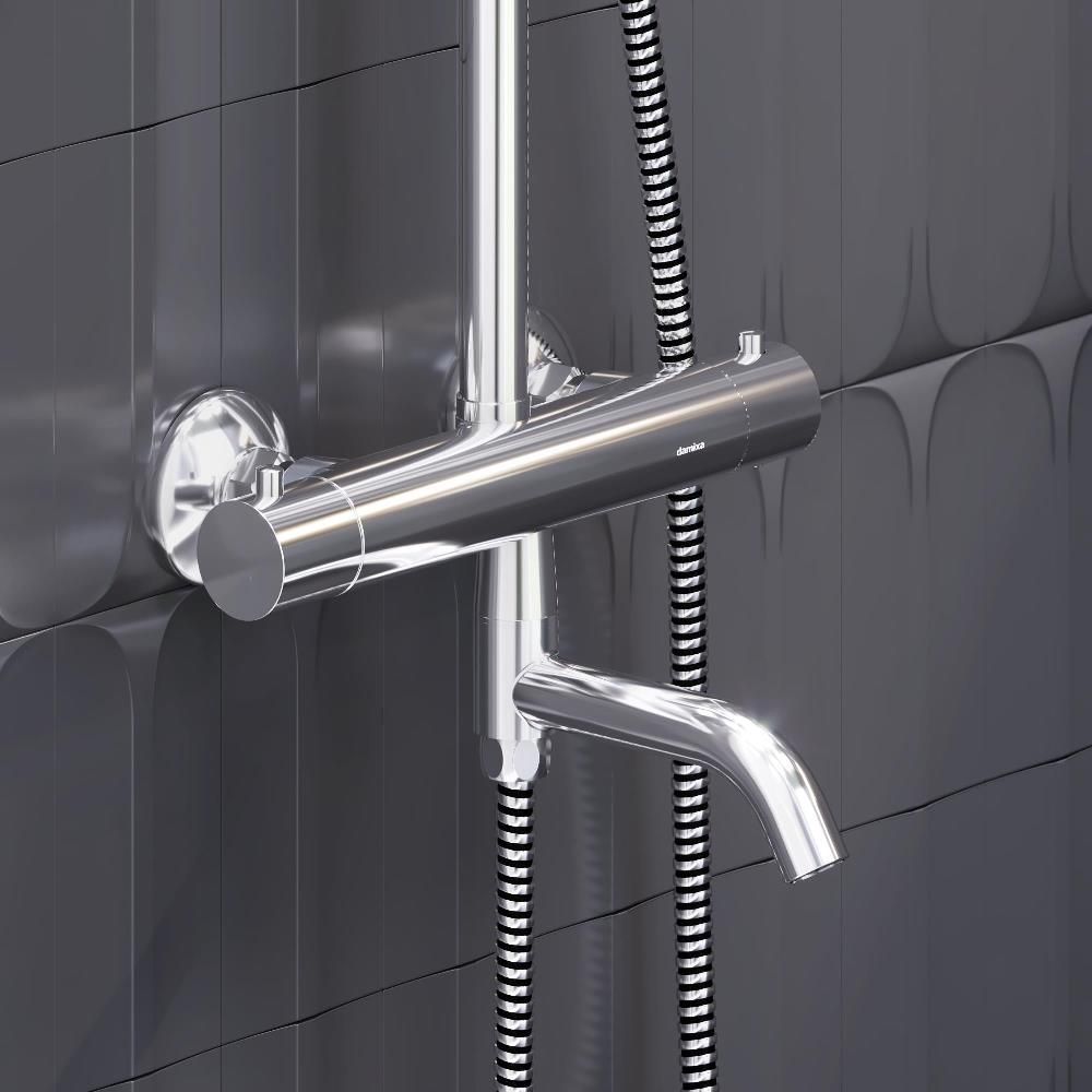 Душевая стойка c термостатом и выдвижным изливом Damixa Jupiter 977810000, материал латунь, цвет хром.
