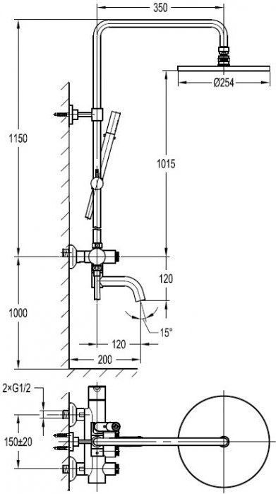 Характеристики душевая система с изливом Cezares (ECO-CVD-01)