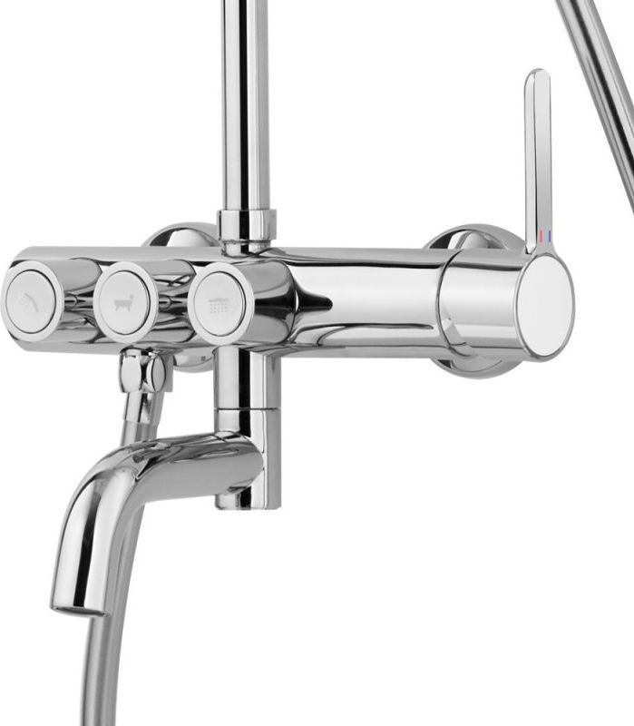 Душевая стойка Cezares ECO-CVD-01 с поворотным изливом, верхний душ диаметр 25,5 см, ручной душ двухфункциональный, материал - латунь, цвет - хром.