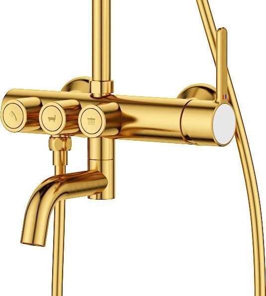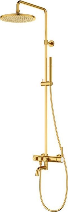 Душевая стойка Cezares ECO-CVD-BORO с поворотным изливом, верхний душ диаметр 25,5 см, ручной душ двухфункциональный, материал - латунь, цвет - брашированное золото.