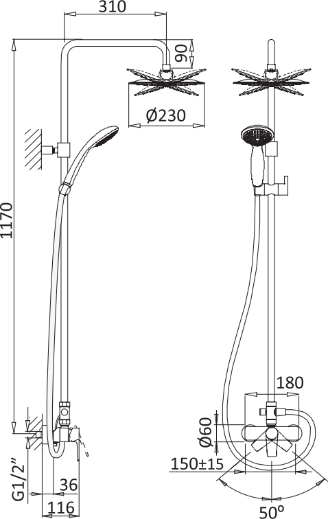 - верхний душ ,