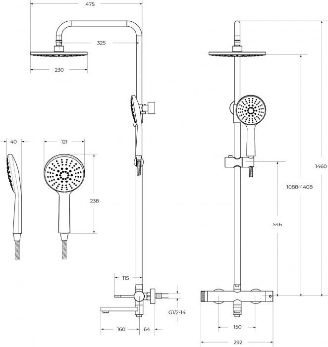 Характеристики душевая система с изливом Cezares (RELAX-CVD-GM)