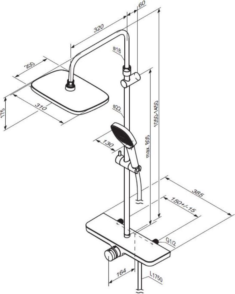 Характеристики душевая система без излива Damixa (940730300)