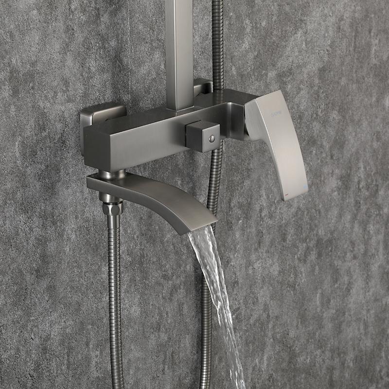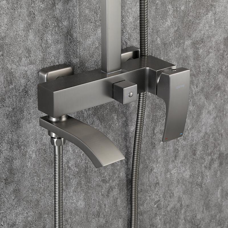 Душевая стойка с выдвижным изливом Gappo G07-9 G2407-9, материал латунь, цвет оружейная сталь.