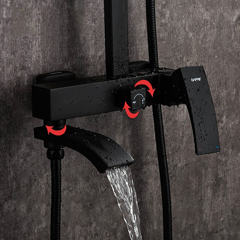 Душевая стойка с выдвижным изливом Gappo G2407-6, материал - латунь, цвет - черный.