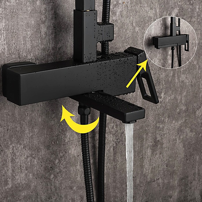 Душевая стойка с выдвижным изливом Gappo G2417-6, материал - латунь, цвет - черный.