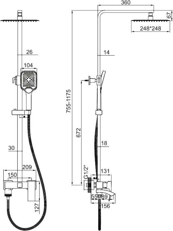 Душевая стойка Gerhans K19114D, оружейная сталь