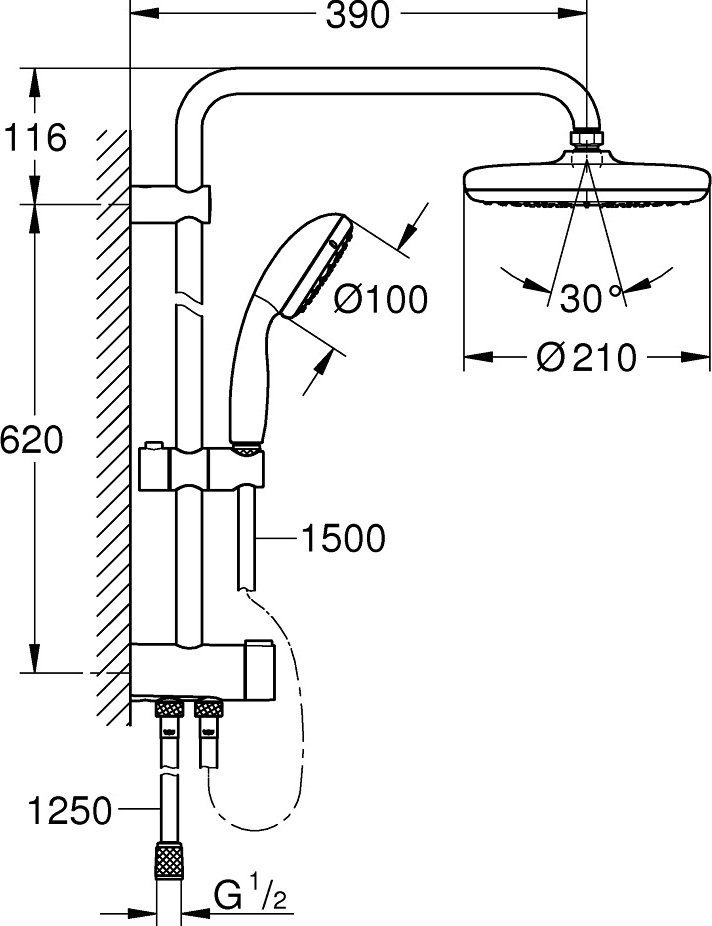 Душевая система Grohe New Tempesta 210 26381001, материал - латунь, цвет - хром.