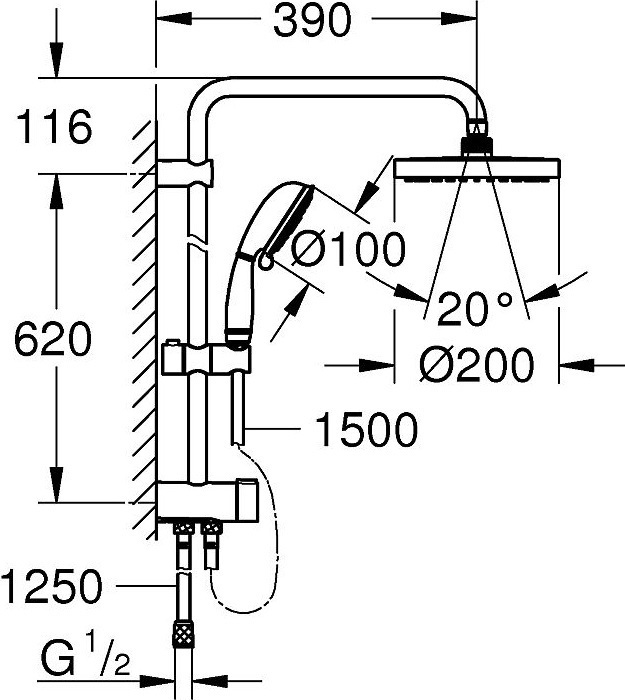 Душевая система Grohe New Tempesta Rustic 200 27399002, материал - латунь, цвет - хром.