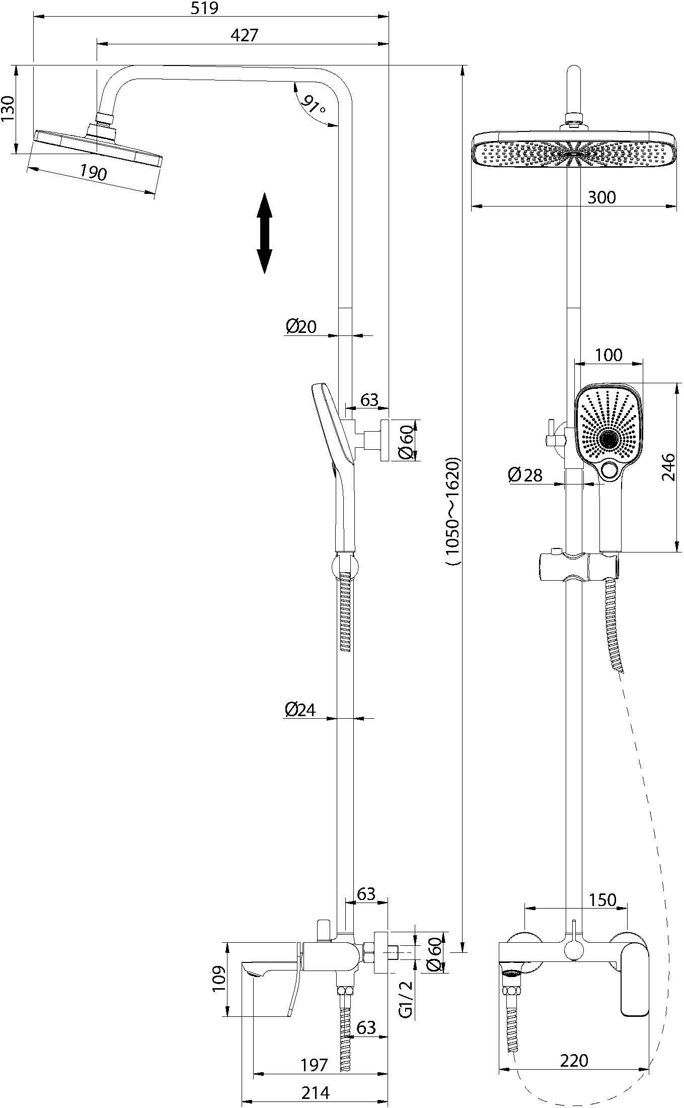 Описание душевая система с изливом Grossman 500.K35.09.420