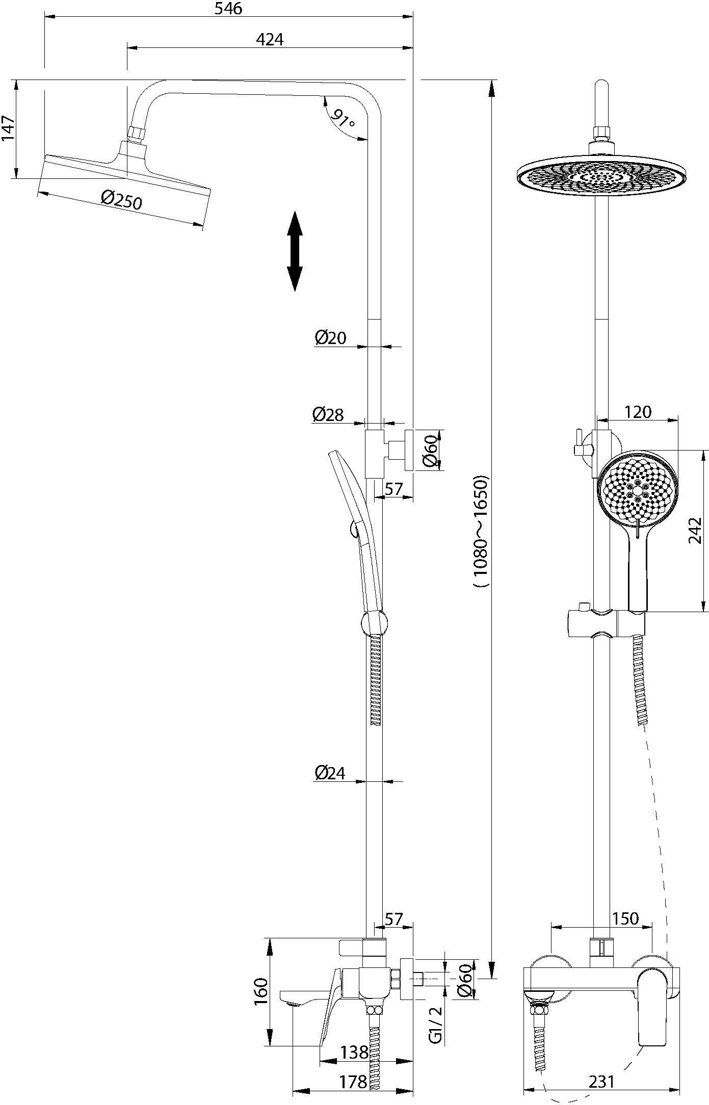 Характеристики душевая система с изливом Grossman (500.K35.01.320)