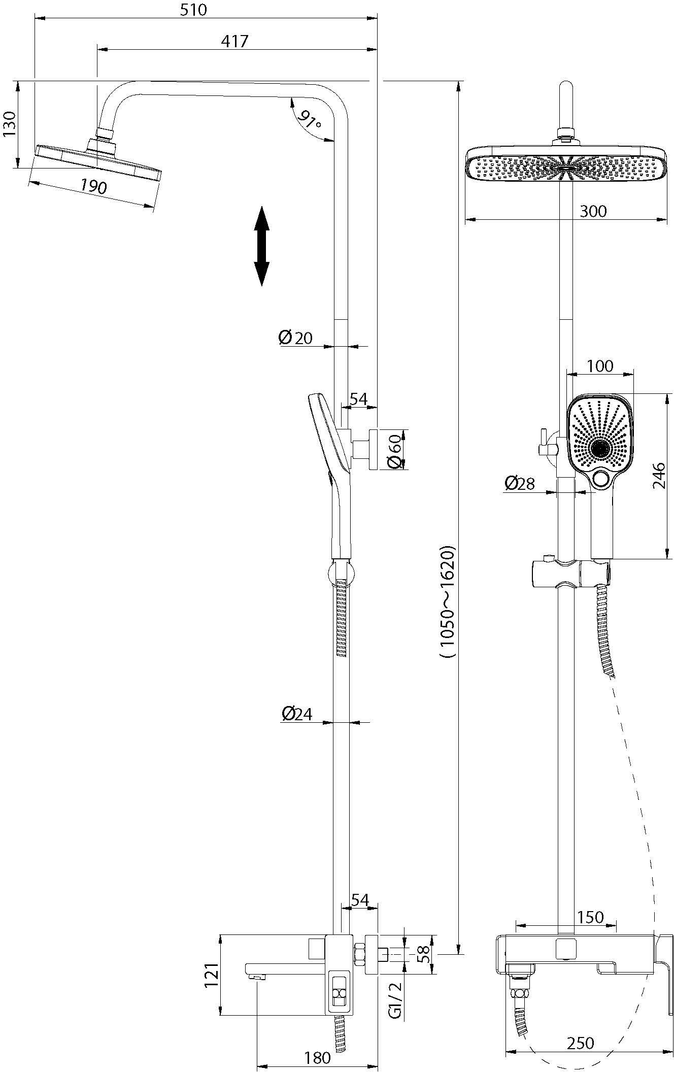 Описание душевая система с изливом Grossman 500.K35.03.100