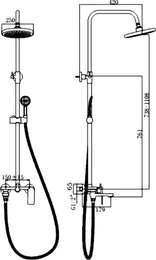 Характеристики душевая система с изливом Haiba (HB24505-3)